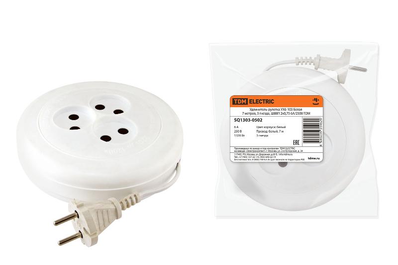 Для того, чтобы заказать Удлинитель-рулетка УХ6-103 белая 7 метров, 3 гнезда, ШВВП 2х0,75 6А/250В | SQ1303-0502 | TDM воспользуйтесь любым удобным способом: