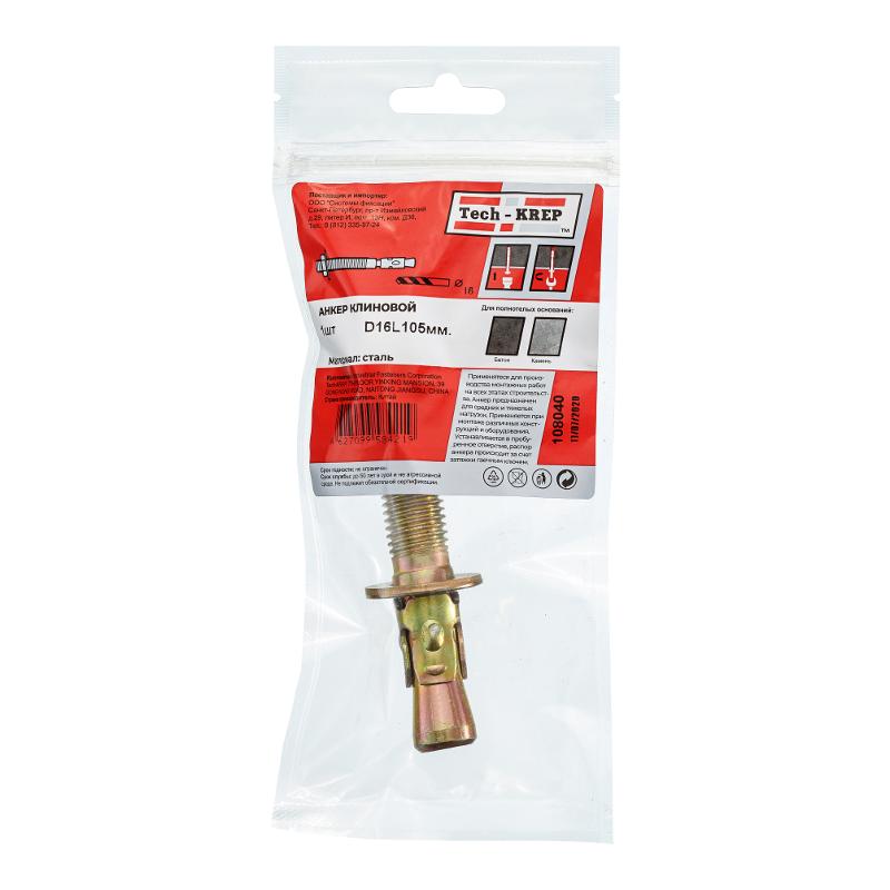 Для того, чтобы заказать Анкер клиновой 16х105 (1 шт) - пакет ( 0,183 кг) | 108040 | Tech-KREP воспользуйтесь любым удобным способом: